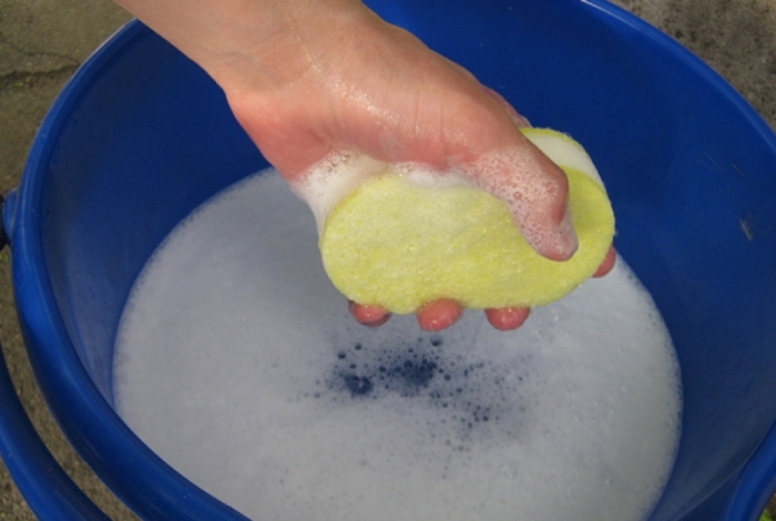 Nota. Para hacer esto, puede usar cualquier detergente para platos, que se agrega en una pequeña cantidad para calentar agua, y una esponja suave.