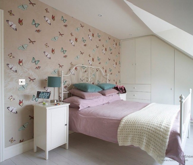 - Este método es especialmente conveniente si el papel tapiz con una textura bien seleccionada o un patrón estrecho está pegado en las paredes.