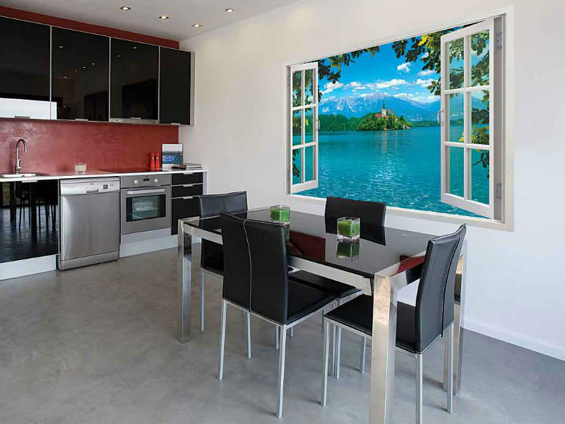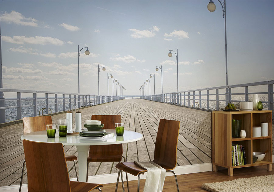- Imágenes panorámicas en el fondo de pantalla de la foto - esta es una imagen con una expansión de espacio, tal efecto puede crear una vista panorámica desde la ventana (verFondo de pantalla de fotos: cuáles elegir) o terrazas en prados verdes y coloridos, mar interminable o picos nevados. A menudo se usan para expandir visualmente el espacio de una habitación.