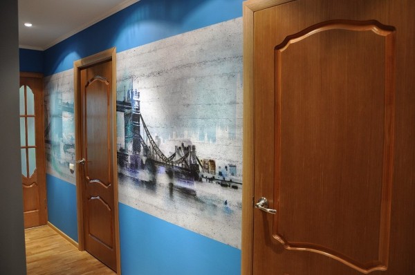 Para recrear un proyecto de diseño orgánico, los revestimientos de paredes convencionales no son suficientes. Los murales para el corredor vendrán al rescate, lo que le permitirá establecer un tono extraordinario en la habitación. Se pueden pegar perfectamente con sus propias manos, pero el precio no es alto, por lo que siempre puede pensar en ellos al hacer el diseño del corredor.