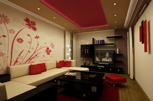 - La elección del dibujo depende del tamaño de la sala de estar.. Si es pequeño, el patrón de papel tapiz debe ser pequeño, no demasiado notorio. Para una sala de estar grande y espaciosa, el uso de adornos y dibujos grandes, brillantes y llamativos es aceptable.