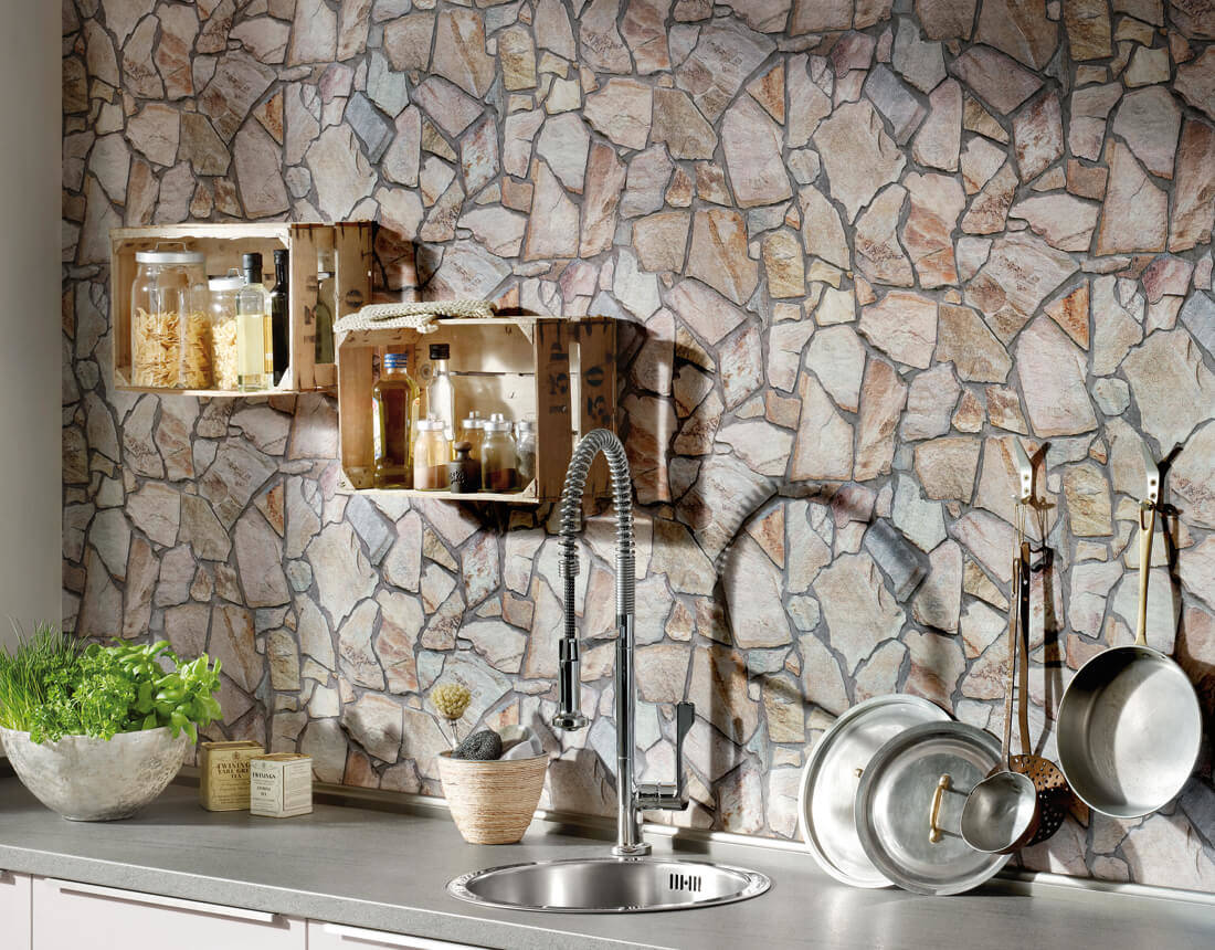 Es muy diferente si selecciona fondos de pantalla para la cocina o, por ejemplo, el pasillo. Es mejor dar preferencia a un recubrimiento más denso y resistente. El vinilo puede hacer frente fácilmente a todas las influencias negativas que tradicionalmente están presentes en estas habitaciones, e incluso en caso de contaminación severa, lavar la superficie no será difícil.