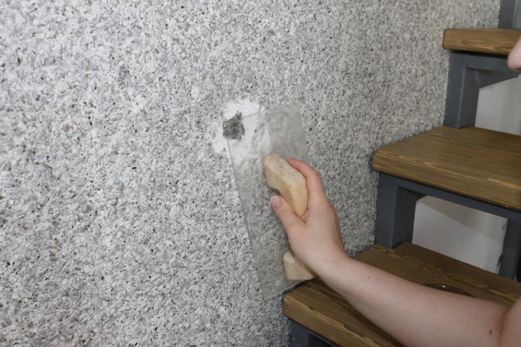 - En caso de daños en el revestimiento, no es necesario volver a pegar por completo toda la pared, como es el caso con el papel pintado enrollado. Es suficiente empapar el área dañada con agua y aplicar una nueva capa sobre ella, y como resultado de esta reparación no habrá el menor rastro.