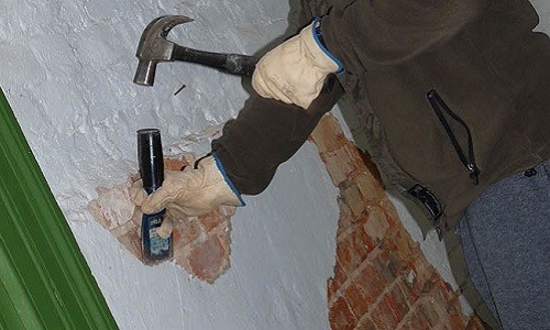- En tales casos, es mejor tocar la superficie. Puedes usar el mango de la espátula. Si el sonido es aburrido, debe limpiar la masilla. Y cuando el muro está viejo, hinchado en algunos lugares, no se puede prescindir de quitar la capa anterior.
