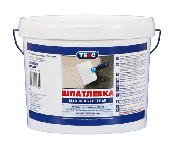 - Masillas de aceite. Consiste en aceite, tiza, agua y pigmentos. Los más duraderos, pero secos durante mucho tiempo, retrasan el tiempo de reparación y requieren un estricto cumplimiento de los requisitos de uso.