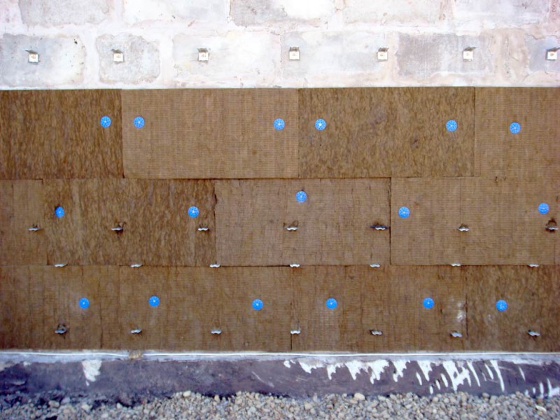 Los paneles de aislamiento se fijan con clavijas con un sombrero ancho, que presiona de manera confiable el aislamiento contra la pared. Cada placa de aislamiento se fija con tres tacos.