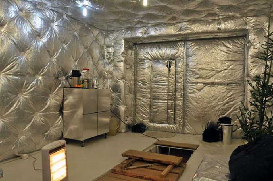 - Pour les portes de garage ordinaires, des tuyaux profilés ou des coins métalliques sont utilisés pour fabriquer le cadre. Pour une finition rapide, à moindre coût, vous pouvez acheter des plaques de polystyrène dont l'épaisseur est supérieure à 30 mm et les coller sur les grilles avec elles. Pour cela, on utilise des «Liquid Nails» ou de la mousse de polyuréthane, qui comblent toutes les lacunes. Pour la beauté, le dessus de la mousse est recouvert d'une feuille d'aluminium, qui est un radiateur, et réfléchit la chaleur à l'intérieur de la pièce.