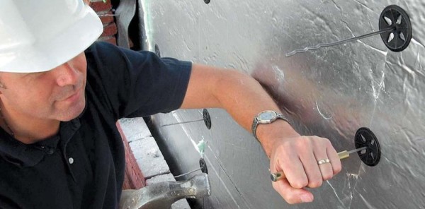 - L'isolation est fixée aux murs en pierre, en brique ou en béton avec des chevilles à plaque avec un perçage préliminaire des trous pour eux. Ou, si la surface est plate, l'isolation thermique peut être collée aux murs avec une solution adhésive spéciale. Avant d'installer l'isolant, toutes les fissures et fissures doivent être réparées.