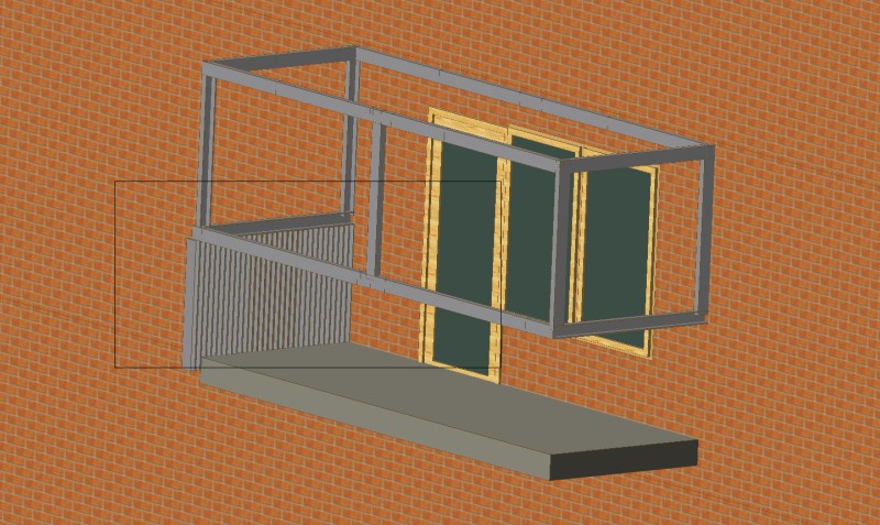 La figura mostra che il telaio è fisso indipendentemente dal balcone. Successivamente, si farà carico delle finestre installate.