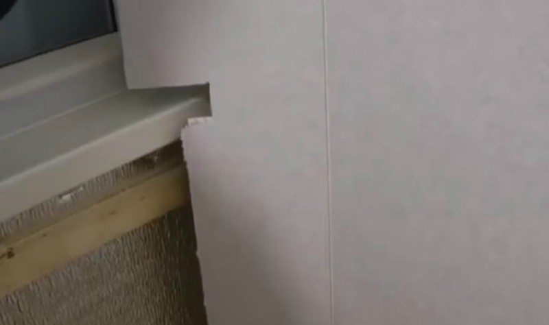 Siamo quasi pronti a finire la loggia con pannelli. In luoghi di pendii e porte c'erano aree non finite.