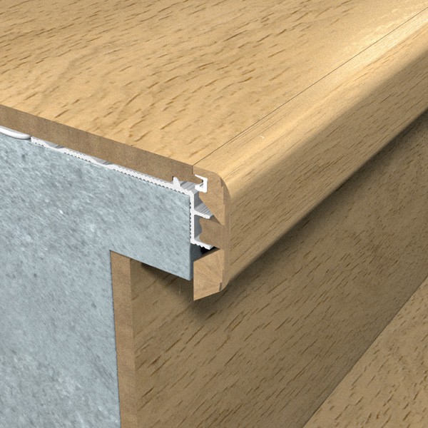 Nella foto sopra, i passaggi sono affrontati con un laminato, i cui elementi sono interconnessi utilizzando un profilo speciale. Per posare la tavola su un piano uniforme, la forma del profilo sarà completamente diversa.