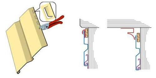 In questo caso, un clic significa che è bloccato in modo sicuro. - La guida a J è necessaria per il fissaggio verticale del raccordo all'incrocio del cornicione con il muro, agli angoli, di fronte al frontone. È lei che assicura la completezza del design.