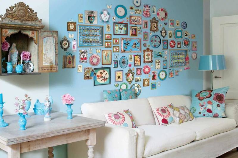 La composizione sul muro può essere progettata usando le cose più inaspettate. Basta mostrare la tua immaginazione.