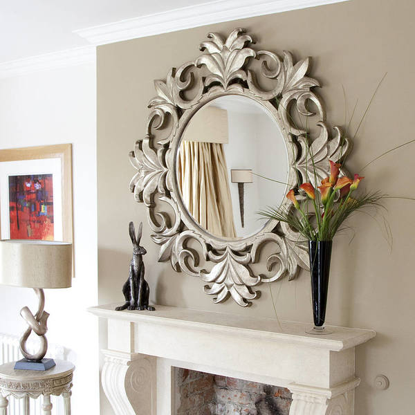 Mancia. Non è necessario inquadrare uno specchio di forma non standard; sembrerà leggero e senza peso. Specchi rettangolari o quadrati possono essere racchiusi in cornici di legno naturale.