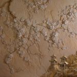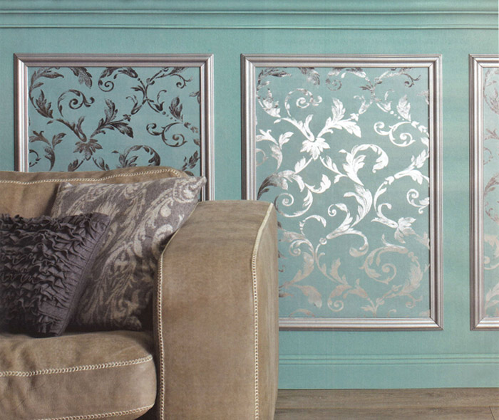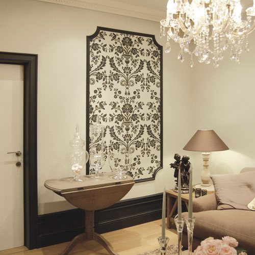 La carta da parati è un materiale tradizionale per la decorazione murale. Possono avere un modello e una trama autosufficienti che non richiedono decorazioni aggiuntive o possono servire da sfondo per elementi decorativi.