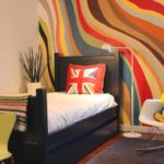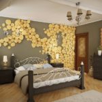 Per dare un aspetto unico all'interno della stanza, è possibile utilizzare vari oggetti per decorare le pareti, non sempre le decisioni familiari e inaspettate ti faranno sorridere o essere sorpreso. Un simile interno sarà ricordato per molto tempo.
