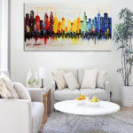 Paesaggi e nature morte sono adatti per un interno classico, negli interni moderni sono appropriate immagini astratte sotto forma di poster o illustrazioni. I dipinti di grande formato non possono essere racchiusi in una cornice in modo che la vista non sia distratta dall'immagine.