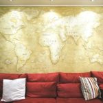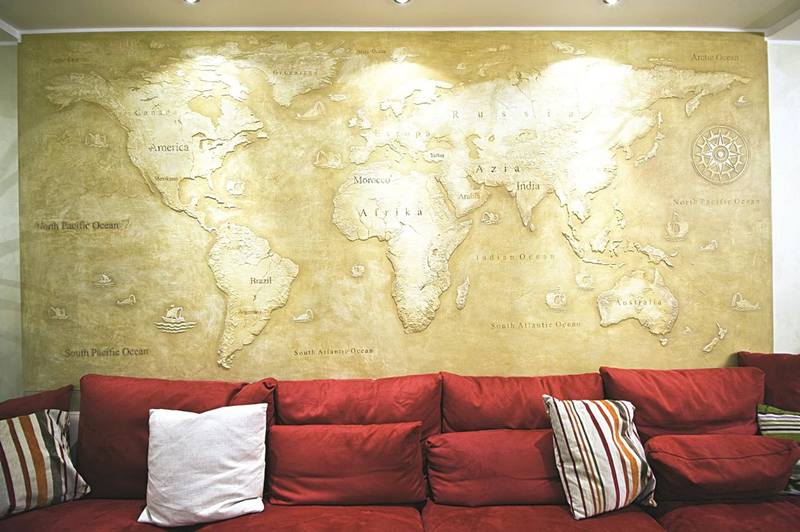 Mappe incorniciate o pagine satinate possono decorare la stanza di un viaggiatore appassionato. Le carte invecchiate artificialmente in eleganti baguette creano un'atmosfera romantica nella stanza.