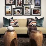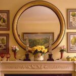 - Le immagini in cornici rettangolari possono essere combinate con un grande specchio rotondo con la loro disposizione simmetrica