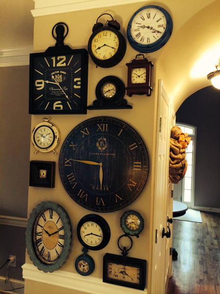 Puoi appendere qualche ora di forma semplice o una collezione di diversi orologi dal design interessante.