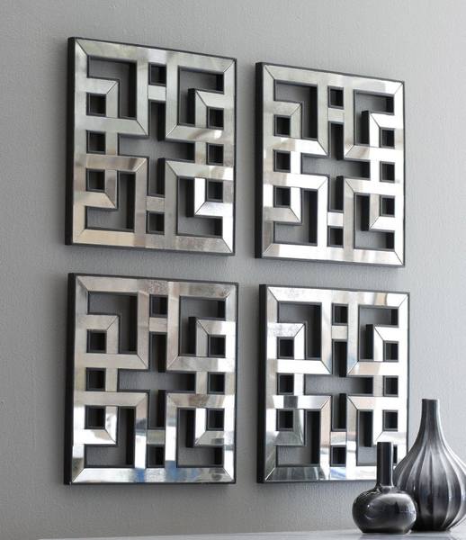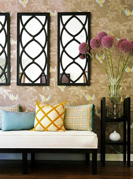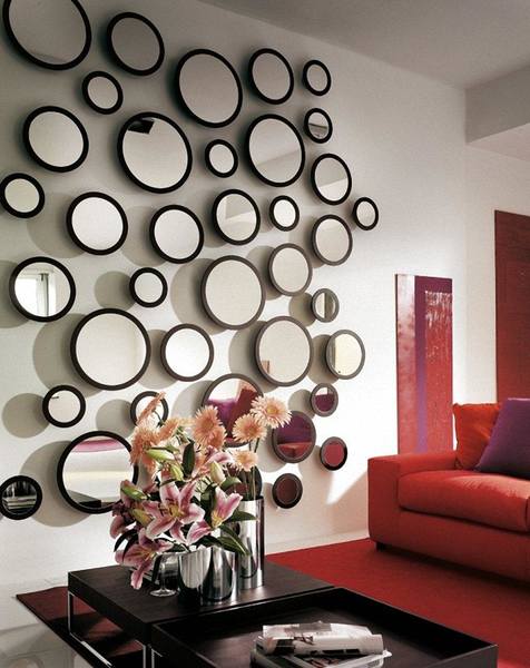 Per creare una composizione interessante ed enfatizzare lo stile degli interni, si consiglia l'uso di un gruppo di specchi. Per fare questo, raggruppa specchi della stessa forma, dando rigore e grazia agli interni o una varietà di forme, creando uno spazio dinamico.