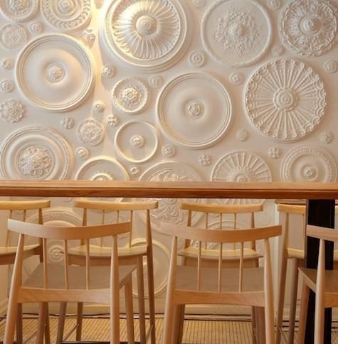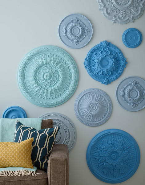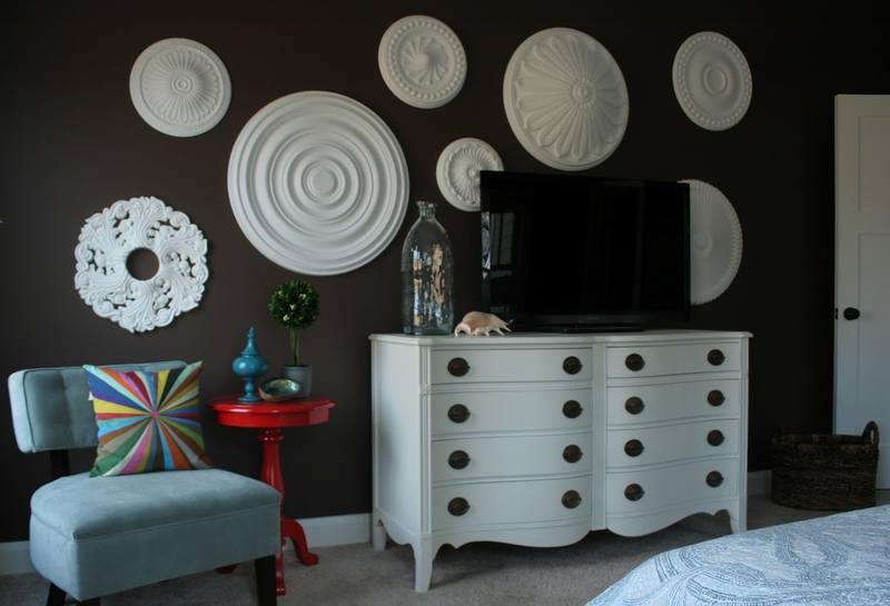 - usando medaglioni a soffitto di vari diametri e stili, puoi dare al muro un'insolita trama volumetrica;