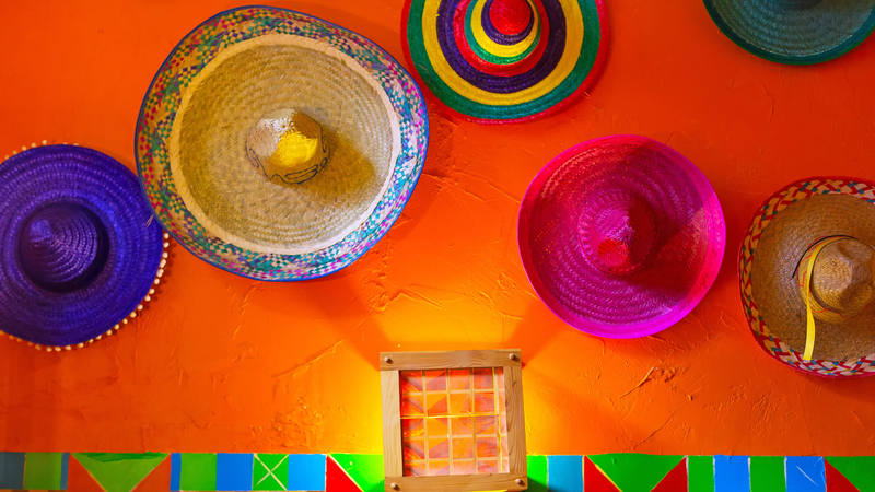 - Cappelli messicani per decorare le pareti in interni luminosi