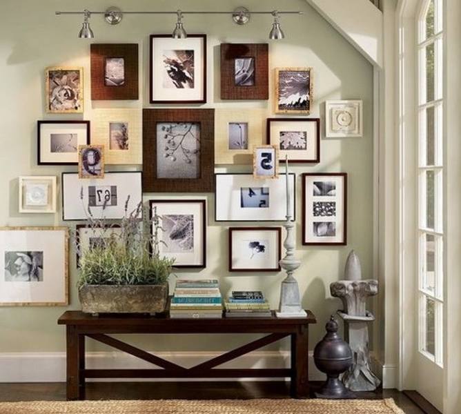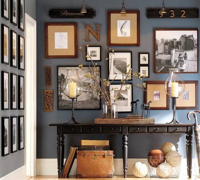 Questo è il modo tradizionale e più popolare di decorare le pareti (vedi Come posizionare le foto sul muro) Un dipinto può essere scelto come dominante all'interno o come composizione di più opere.