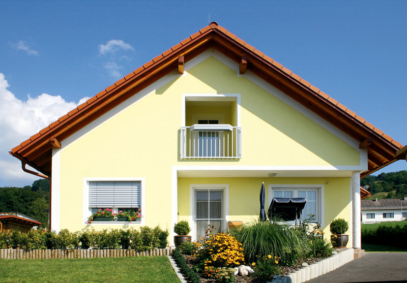 - Quando dipingi la facciata, scegli la vernice leggera, in colori pastello. Tali tonalità sono armoniosamente adatte per un'immagine olistica e in questo caso sarà più facile scegliere il colore del tetto. Per evitare la monotonia nei colori, utilizzare diverse tonalità del colore utilizzato.