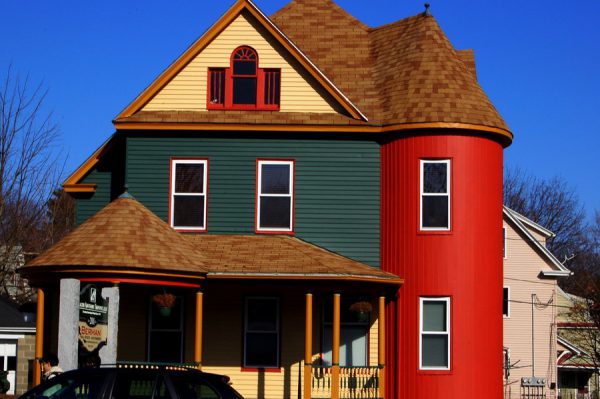 - Puoi anche considerare le facciate multicolori, ma in questo caso devi scegliere la vernice e la finitura giuste. È meglio scegliere una combinazione armoniosa con componenti simili.