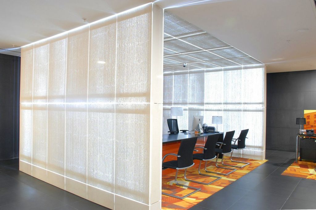 - Partizioni in calcestruzzo traslucido in un interno di ufficio