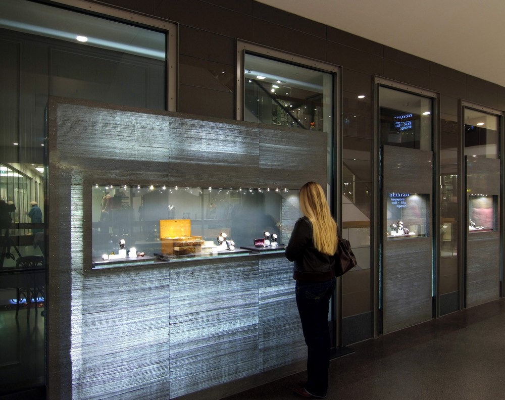 Oggi, non solo le pareti divisorie interne e le lastre per facciate sono realizzate in cemento traslucido, ma anche controsoffitti, banconi da bar e reception, piccole forme architettoniche (panche, recinzioni) - e persino lampade.