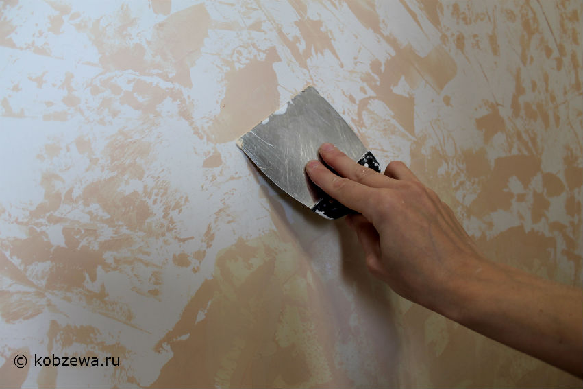 Innanzitutto, viene applicato uno strato di tonalità chiare, che funge da substrato e quindi scuro, che crea l'effetto. Per imitazioni più complesse e strutturate, c'è un altro modo per preparare da soli la miscela.
