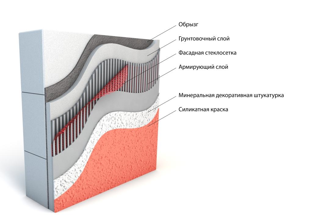 Suggerimento: di fronte all'edificio con intonaco cementizio, lo spessore dello strato non deve superare i tre centimetri. Inoltre, con uno strato di 20 millimetri e oltre, è necessario utilizzare una rete speciale per il rinforzo.