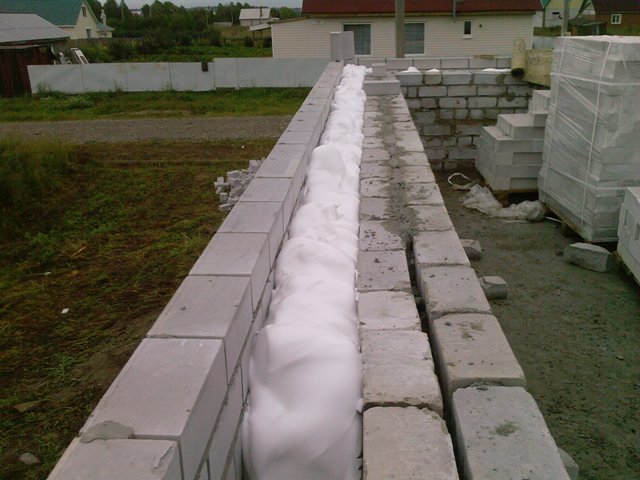 Con l'aiuto del polistirolo espanso, le pareti esterne delle case sono isolatepiani interrati e lastre con massetto di cemento e sabbia.