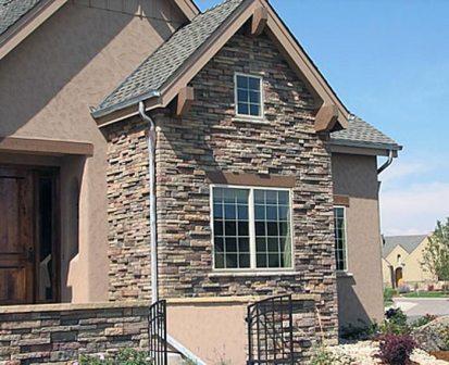 Mancia. La pietra decorativa può essere utilizzata come naturale per decorare gli angoli e la parte inferiore della facciata dell'edificio. Viene utilizzato con pareti intonacate.