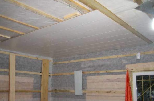 Il rivestimento del soffitto con pannelli in PVC viene eseguito allo stesso modo dell'installazione di pannelli MDV. Anche in superficie è necessario creare una cassa e molto spesso per la plastica è fatta di assi di legno.