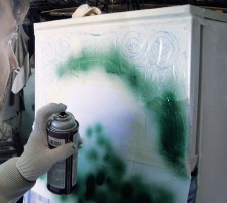 Astuce: les colorants nitro sont généralement appliqués à partir du pistolet de pulvérisation, et pour les petites surfaces, un tel appareil doit être remplacé par une bombe aérosol et peint comme indiqué sur la photo.