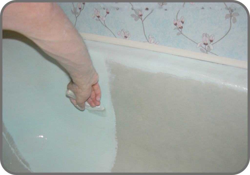 Lorsque le bain est nettoyé, les zones clivées doivent être traitées avec du solvant ou de l'acétone, mais en aucun cas vous ne devez utiliser de white spirit ou de térébenthine, car elles ont une teneur en matières grasses accrue et laissent des taches. Il est conseillé de dégraisser avec un solvant 3 à 5 fois, en laissant à chaque fois sécher complètement le bain.