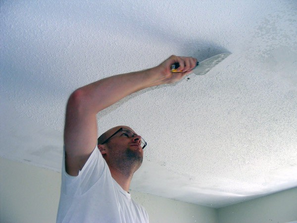 Au premier stade de la préparation, le plafond doit être nettoyé du revêtement précédent.