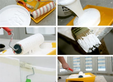 - Le processus de peinture du plafond des cloisons sèches doit être effectué en continu, en appliquant la première couche de peinture immédiatement sur toute la surface.