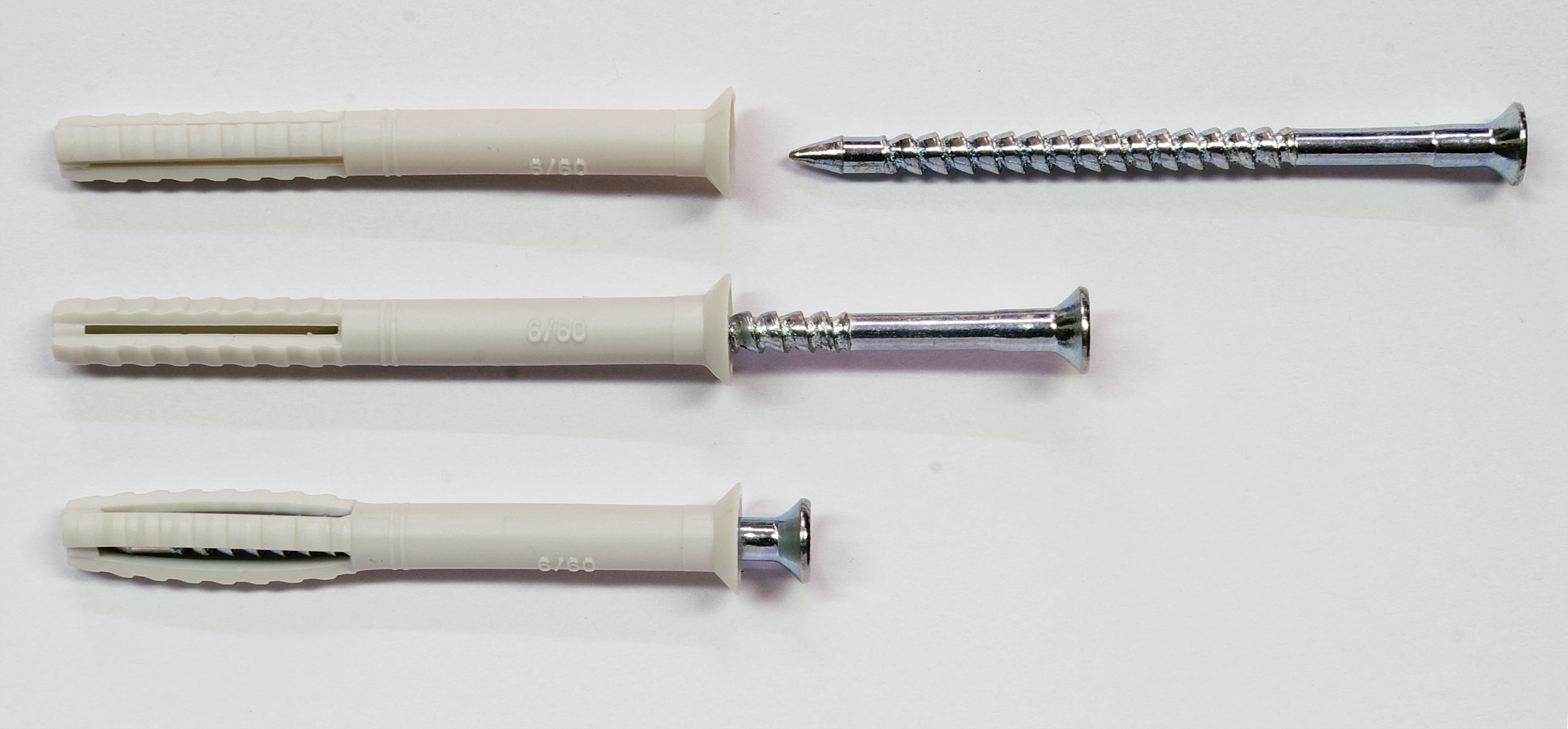 | Clous à cheville (généralement de 6 x 60 mm). Ils sont nécessaires pour le montage des guides et sont achetés en fonction de l'étape entre les points de montage dans un demi-mètre. | |
