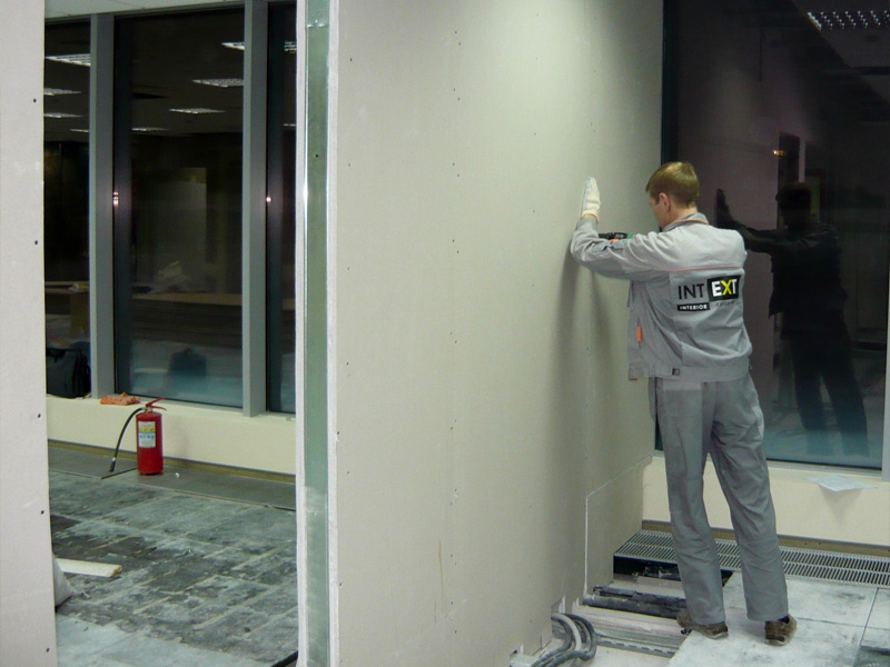 - Le revêtement à deux couches est effectué avec le chevauchement de tous les joints de la première couche. Seule la deuxième couche de cloison sèche est mastic et renforcée.