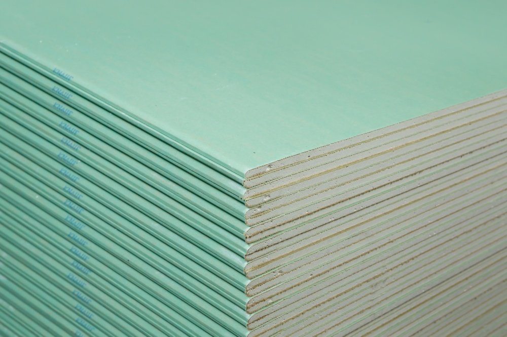 | Le GKLV (cloison sèche étanche à l'humidité) a une couleur bleu-vert et se distingue par des additifs antiseptiques dans la composition du noyau de gypse, ainsi qu'une coque en carton résistant au trempage. | |