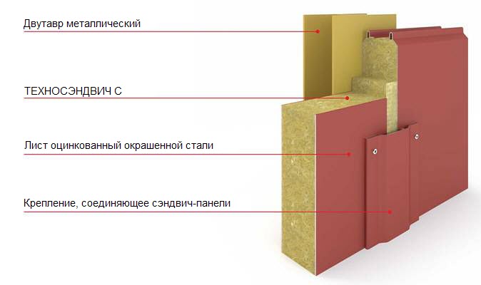 - Ce type de panneau a un poids plus solide et, par conséquent, le bâtiment a besoin d'une fondation plus puissante. Par conséquent, un panneau sandwich basé sur une feuille profilée n'est pas monté sur un bois, mais sur un cadre métallique - que nous voyons sur la photo.