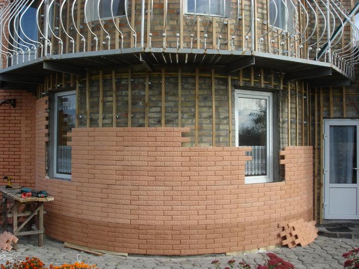 De plus, sans les connaissances et les compétences appropriées, il n'est guère possible de faire la maçonnerie de vos propres mains de manière qualitative: elle doit être renforcée, étroitement connectée au mur existant. - Dans une maison en construction, ce type de décoration est généralement conçu à l'avance et est réalisé en érigeant des murs. Ils l'appellent bien maçonnerie, car les puits formés entre les deux murs sont remplis d'une isolation lâche.