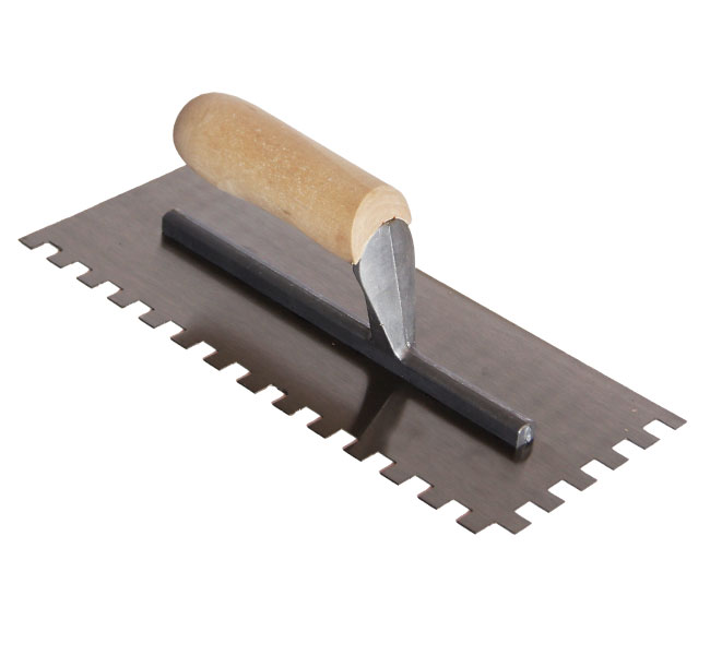 Les bords lisses de cet outil sont parfaits pour appliquer une fine couche de colle sur les murs, et avec un peigne, il est pratique d'appliquer une couche uniforme sur le carrelage ou la base de finition.