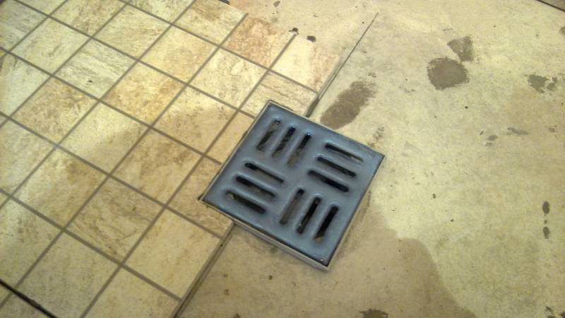 - Dans notre cas, le sol a non seulement différents niveaux, mais également une cloison en brique, qui devra être contournée par la découpe figurative des carreaux, ce qui prend beaucoup de temps.