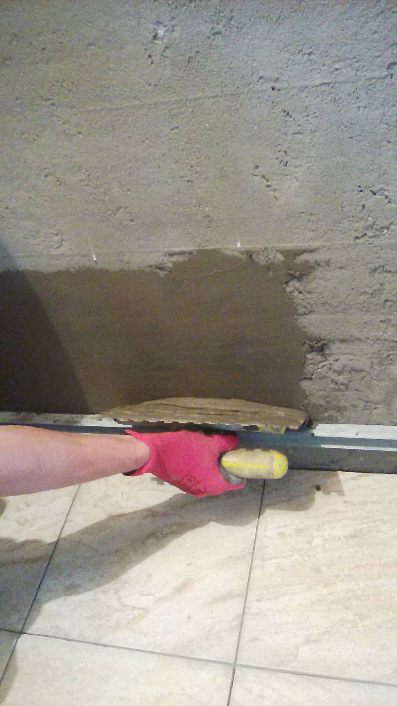 Pour corriger cette situation, avant de poser chaque rangée, il est nécessaire de recouvrir la base en béton d'une très fine couche de colle (pour le scoring). La même chose peut être faite avec des carreaux (lors de l'application d'une couche de colle sur les murs), bien que cela ne soit pas nécessaire - nous n'avons recours à cette technique que dans les cas où la colle sur le mur est légèrement altérée.