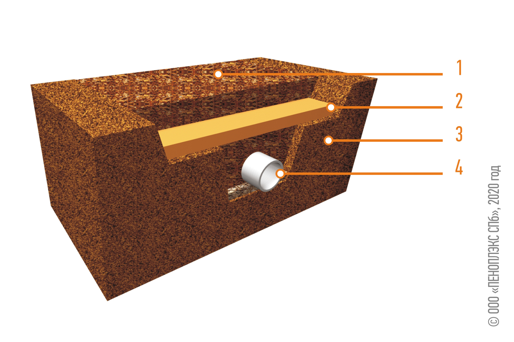 En hiver, dans la majeure partie de la Russie, le sol gèle à une profondeur de 0,8 à 2,5 mètres. LA FONDATION PENOPLEX aidera à protéger les structures souterraines et les services publics contre le gel et le soulèvement dû au gel®. Le gonflement givré est une augmentation du volume de sol humide en raison de son gel.